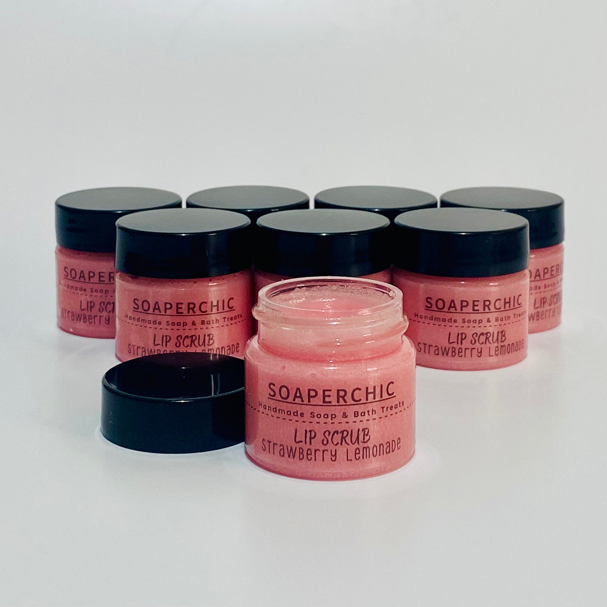Handmade fresh in small batches using natural blend of cane sugar, sweet almond oil, mango butter, flavor oil & cosmetic grade color.