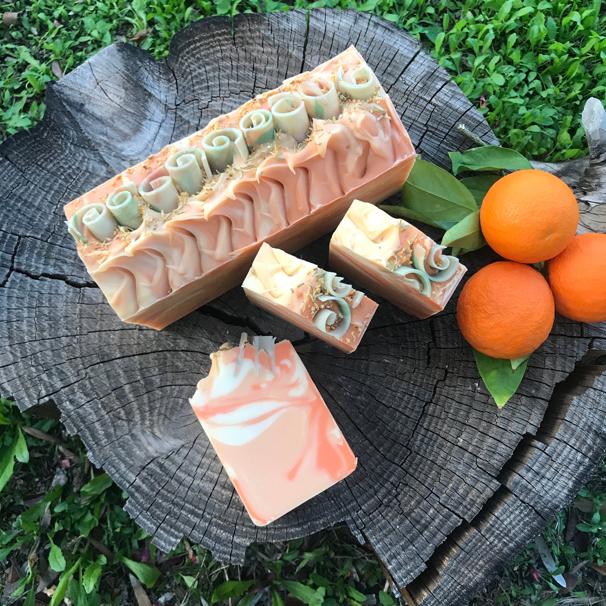 Saponified olive oil, organic coconut oil, shea butter, sweet almond oil, castor oil, organic coconut milk, French kaolin clay, sodium lactate, ethically sourced mica, fragrance oil, orange zest botanical.